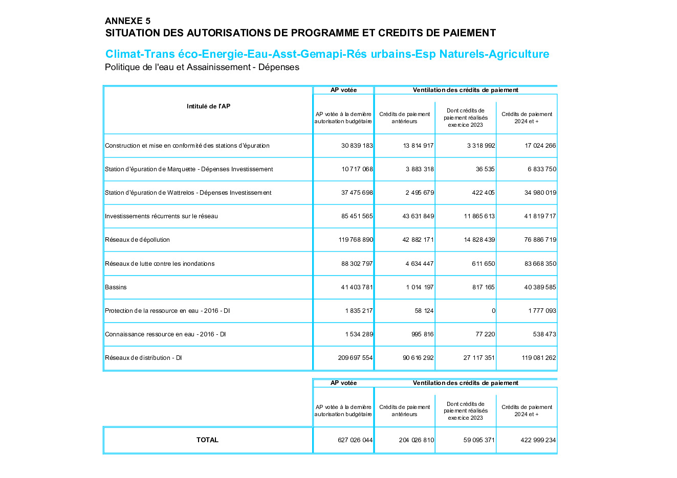 • Annexe 5 - Situation des autorisations de programme et crédits de paiement (.pdf)