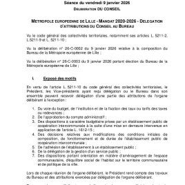 26-C-0005 : Métropole européenne de Lille - Mandat 2020-2026 - Délégation d'attributions du Conseil au Bureau (.pdf)